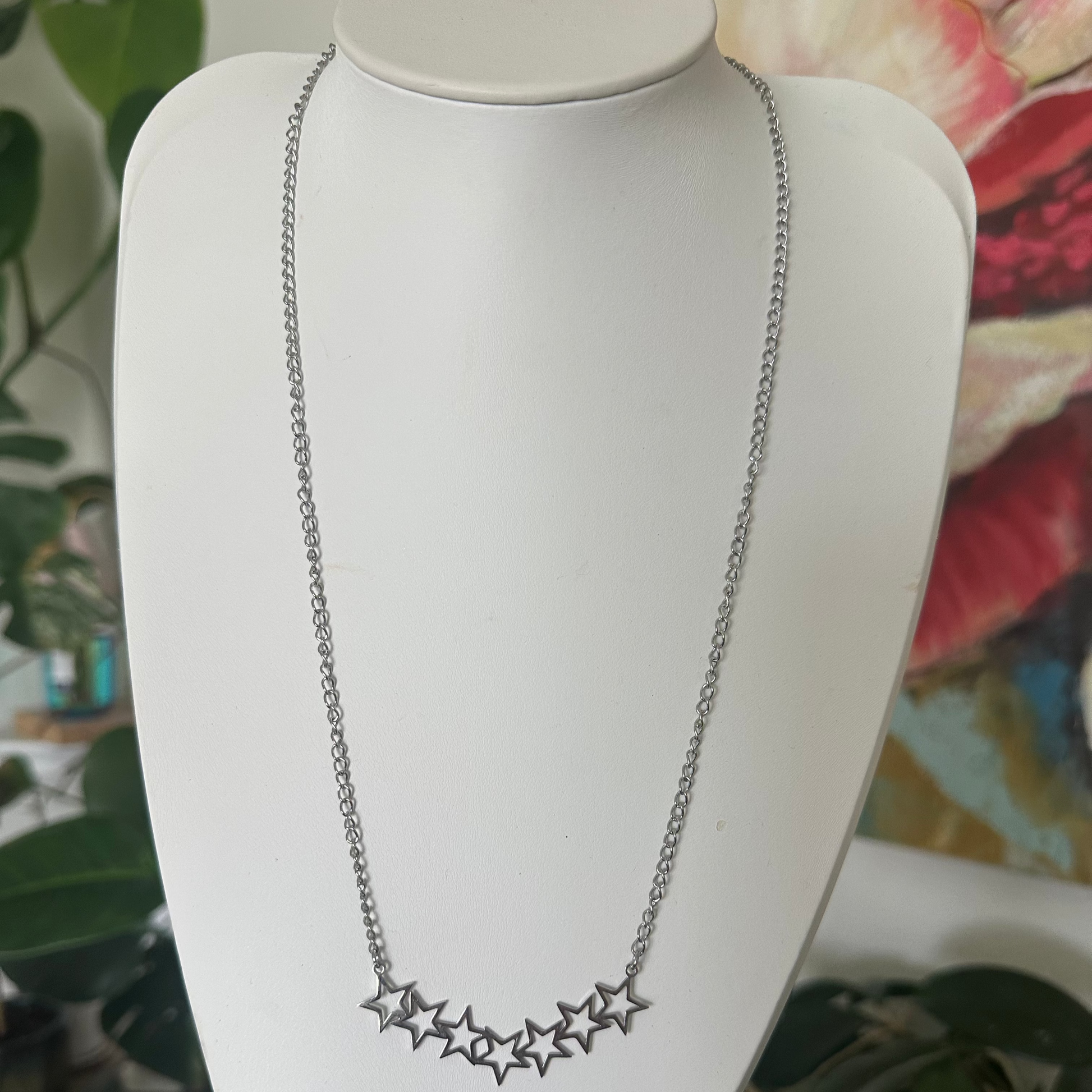 The Starlit Cascade Necklace is a modern ode to the night sky. With its minimalist arc of stars, it’s perfect for layering with other chains or letting it shine solo as a statement piece. Lightweight yet durable, this necklace adds just the right amount of celestial sparkle to your everyday look. Plus, its stainless steel construction means it’s made to last—no fading, no fuss, just timeless stargazing style.✨ Starlit Cascade Necklace